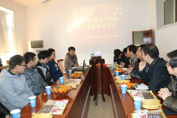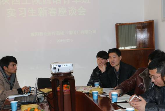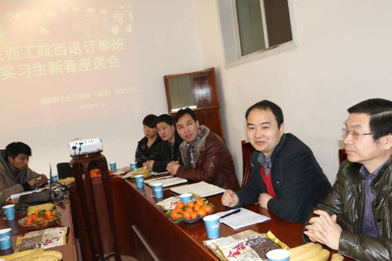 2015年2月6日上午,公司与西北医疗器械集团公司开办的“西诺”订单班实习生座谈会在该公司四楼会议室召开,数控公司经理卢文澈、党总支书记南欢和西北医疗器械集团公司生产总监田耕、总经办主任聂西社、总装车间主任刘登峰和订单班顶岗实习的二十余位同学参加了座谈会,聂主任主持了会议。