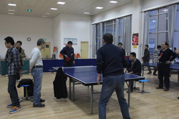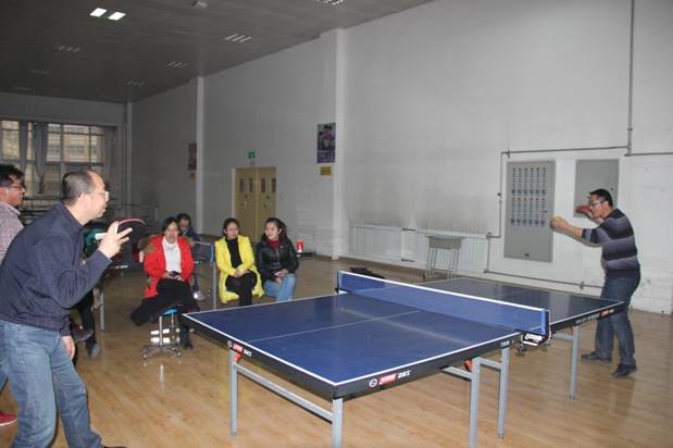 为活跃职工的业余生活、增强大家的体质,2014年12月26日下午,经数控公司分会与继续教育中心商定,数控分会全体会员与2014年中职团队国培数控班全体学员间举办了乒乓球联谊比赛,比赛在公司乒乓球馆举行,约有五十余人参加了比赛。
