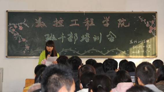 为进一步加强班级建设,促进优良学风的形成,近日,数控公司于在笃学B二楼的阶梯教室召开了班干部培训大会,大一、大二各班班长、团支书、学习委员、生活委员参加了培训。