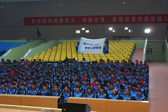 2012年9月14日下午,数控工程公司2012级新生开学典礼暨入学教育在明德堂大礼堂举行。数控公司经理卢文澈、总支书记南欢、副经理刘军旭、教学办主任苏宏志、工程训练中心主任王彦宏、学工办主任侯涛、全体辅导员和500多名2012级新生参加了会议。会议由学工办主任侯涛主持。