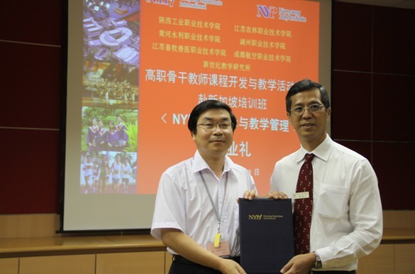 2011年11月11—23日, 数控工程公司南欢与服装艺术公司康强、纺织染化公司纪惠军、尚华、杨小侠、工商管理公司张敏娜六位教师参加了由教育部新世纪研究所举办的“课程开发与教学活动设计”高职骨干教师培训班学习,来自全国的多所高职院校的教师参加了此次培训。培训由新加坡南洋理工公司国际职教研修中心(Nanyang Polytechnic International)承办。
